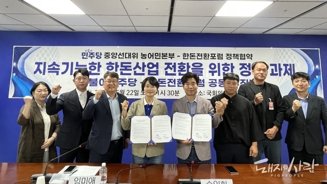 제21대 대통령 선거를 앞두고, 한돈전환포럼(대표 송일환)은 22일 국회의원회관에서 더불어민주당 중앙선대위 농어민본부(농어민본부장 임미애)와 정책협약을 체결했습니다.