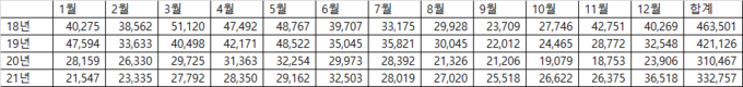 - '21년 12월 누적 돼지고기 수입량 332,757톤(전년 대비 7.2% 증가)