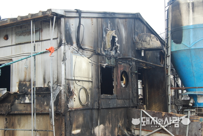 불은 약 1시간만에 출동한 영주소방서 소방관에 의해 진화가 되었지만 농장의 피해는 사진에서 보는 것과 같이 상당할 것으로 추정됩니다. 모든 양돈 농가에서는 화재를 대비한 전기시설 점검 및 소화시설 정비가 필요한 시기입니다.