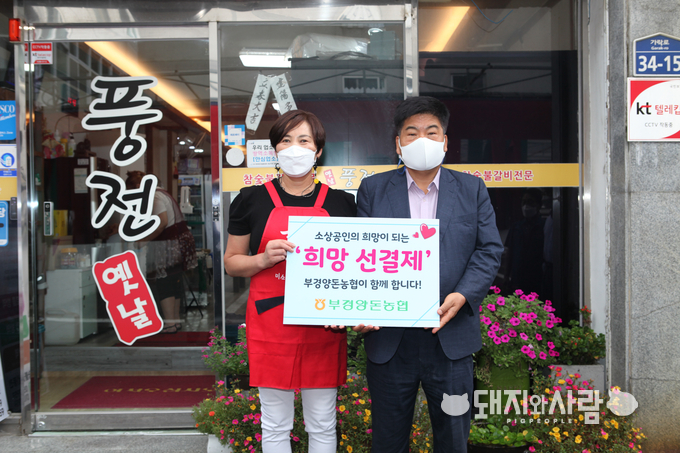 부경양돈농협 이재식 조합장은 이번달 1일 김해시 소재 옛날풍전식당을 찾아 소상공인을 위한 ‘희망 선결제 캠페인’ 릴레이에 동참했습니다.