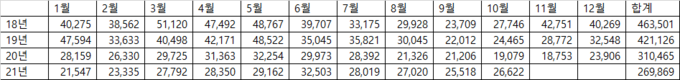 - 10월 누적 수입량 269,869톤(전년 동기 대비 0.8% 증가)