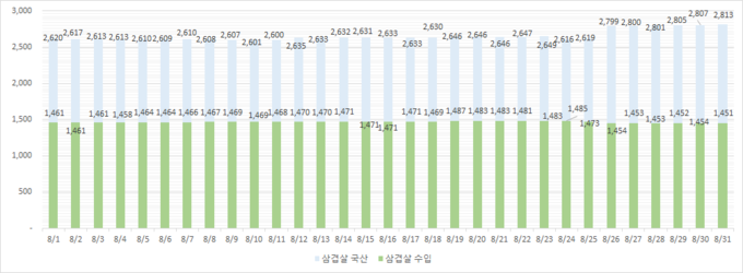 ※ 8월 8일자 주간 돼지고기 시황(출처 한국육류유통수출협회)