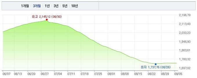 - 5일 통계청 8월 소비자물가지수 전월대비 0.1% 하락, 전년동월대비 5.7% 상승