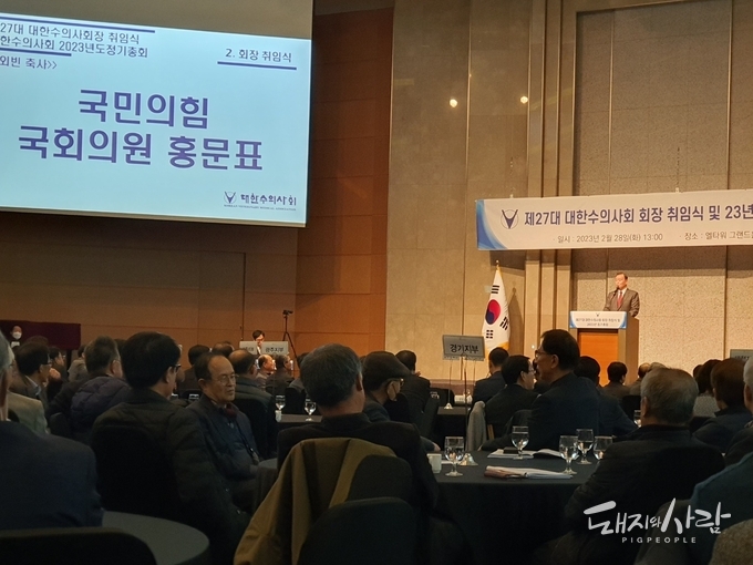 이날 취임식에는 전국에서 모인 150여 명의 수의사 회원들을 비롯해 홍문표 의원(국민의힘), 조정훈 의원(시대전환), 정부 및 언론, 소비자단체 등 내외빈이 참여한 가운데 진행되었습니다.