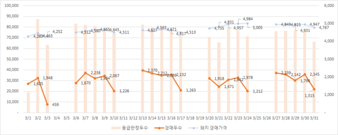 ◆ 3월 등급판정두수 및 도매가격, 수입육, 소매가격, 한돈재고동향, 소비자심리지수 요약