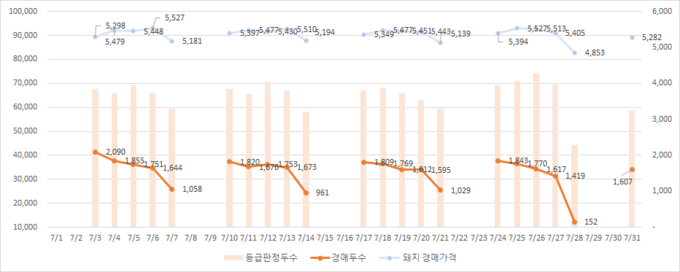 ◆7월 등급판정두수 및 도매가격, 수입육, 소매가격, 한돈재고동향, 소비자심리지수 요약(TBU 업데이트 예정)