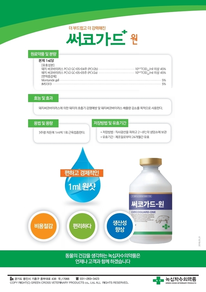 편리하고 경제적인 1ml 원샷 써코 백신 '써코가드 원(Circoguard One)'