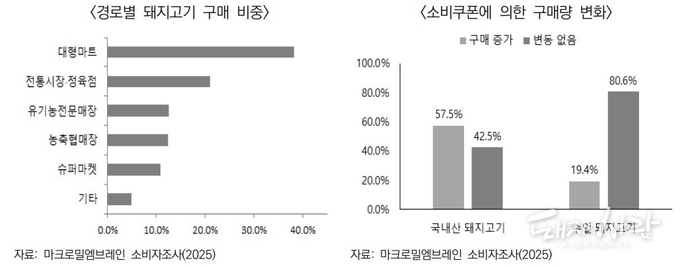 - 2025년 국내산 돼지고기 구매를 늘린 응답자 중 23.2%가 2026년에도 구매 확대 의향을 보인 반면, 수입 돼지고기의 경우 해당 비율은 10.8%에 그쳤다. 이는 국내산 돼지고기 소비가 상대적으로 지속성을 갖는 것으로 해석된다.