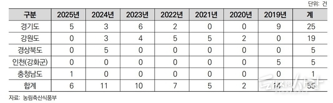- 2025년 구제역(Foot-and-Mouth Disease; FMD)은 3월 한우 농장에서 최초로 발생했으며, 이후 4월에는 2018년 이후 7년 만에 돼지 농장에서 구제역이 확인되었다. 2025년 돼지 농장에서는 총 5건의 구제역이 발생했으며, 약 7천 마리의 돼지가 살처분되었다.