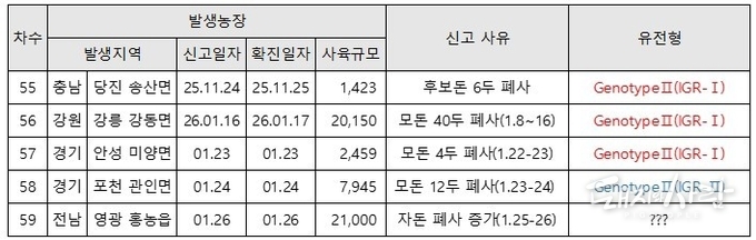 한편, 전남 영광 발생 농장(1.24, 59차)에 대한 바이러스 유전형 분석 결과는 현재까지 아직 확인되지 않은 상태입니다. 만약 영광 사례마저 IGR-I형으로 확인될 경우, 국경검역 책임론과 농장방역 책임론을 둘러싼 논란은 더욱 격화될 것으로 보입니다.