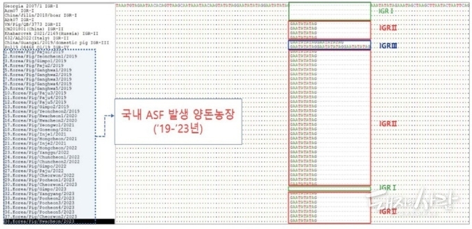 돼지와사람이 확보한 정부 자료에 따르면 이들 3개 발생 농장에서 분리한 바이러스는 모두 지난 '19년 9월부터 지금까지 국내서 유행하고 있는 '유전형 2형(Genotype II)'에 속하는 바이러스입니다. 그런데 세부적으로는 차이가 있습니다.