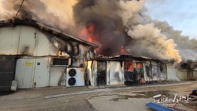 이 불로 샌드위치판넬 돈사 2개 동(260㎡)이 전소되고 모돈 12두와 자돈 130두 등 돼지 142마리가 폐사했습니다. 소방서 추산 4천8백만원의 재산피해가 발생했습니다.
