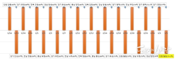 [1보] 오늘(5일) 오후 강원도 철원군 서면 소재 양돈농장의 일제검사 시료에서 ASF 양성이 확인되었습니다. 시료는 구체적으로 폐사체(3두)로 알려지고 있습니다. 추가 시료채취와 함께 정밀검사가 진행 예정입니다. 해당 농장은 지난 73차 발생농장과 거의 인접한 위치로 파악됩니다.