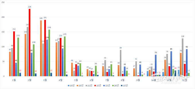 ▶월별 ASF 야생멧돼지 발견 현황@돼지와사람 편집