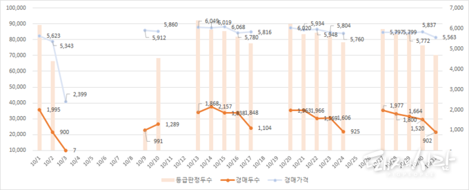 - 경매가격과 경매두수는 등외 및 제주 제외임