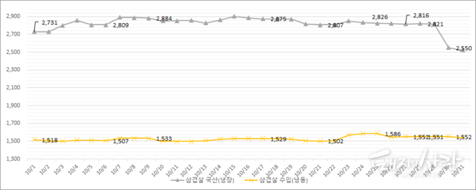※ 10월 27일자 주간 돼지고기 시황(출처 한국육류유통수출협회)
