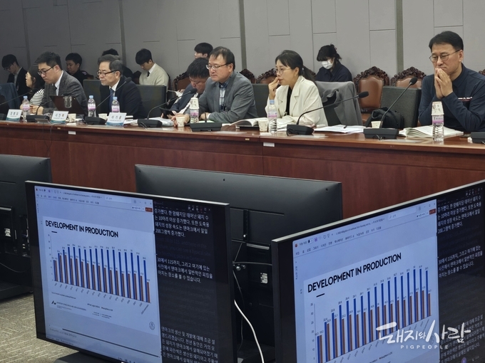 국회에서 국내 양돈농가의 분뇨 처리 현실을 반영한 온실가스 산정 방식 개편 요구가 본격화됐습니다.