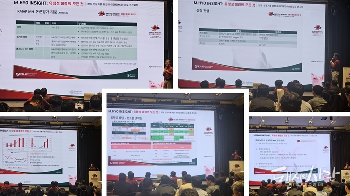 한국베링거인겔하임동물약품(대표 서승원)이 지난 5일 대전 롯데시티호텔에서 ‘M.HYO INSIGHT(엠하이오 인사이트)’ 세미나를 열고 돼지 유행성 폐렴(Mycoplasma hyopneumoniae)의 최신 동향과 질병 컨트롤 전략을 공유했습니다.