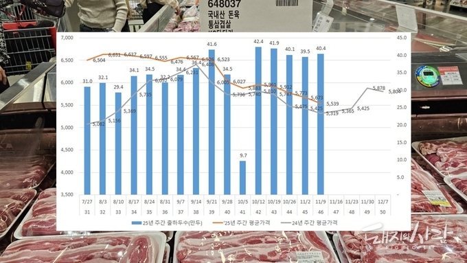 7월 말 이후 도축두수가 주당 40만두 안팎을 유지하는 가운데, 소비 비수기와 김장·연말 특수 지연이 겹치며 돈가 약세가 이어지고 있는 모습입니다. 업계는 “김장과 연말 성수기 수요가 얼마나 회복되느냐에 따라 연말 돈가 흐름이 좌우될 것”으로 밝혔습니다.