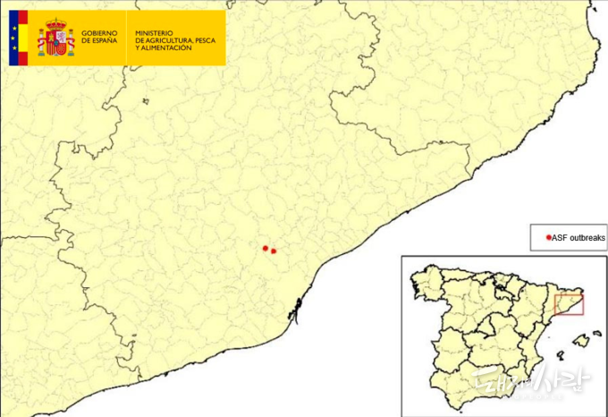 스페인 농림수산식품부(MAPA)는 카탈루냐 주정부 공식 수의당국이 바르셀로나 인근 벨라테라에서 발견된 야생멧돼지 폐사체 2마리에서 ASF 바이러스 양성을 확인해 보고했다고 28일(현지시각) 밝혔습니다. 두 개체 모두 지난 26일 폐사한 상태로 발견됐으며, 마드리드 알헤테 중앙수의연구소가 정밀검사 끝에 이를 확진했습니다. 스페인에서 ASF가 확인된 것은 1994년 11월 이후 처음입니다. 30년 만에 재발한 것입니다.