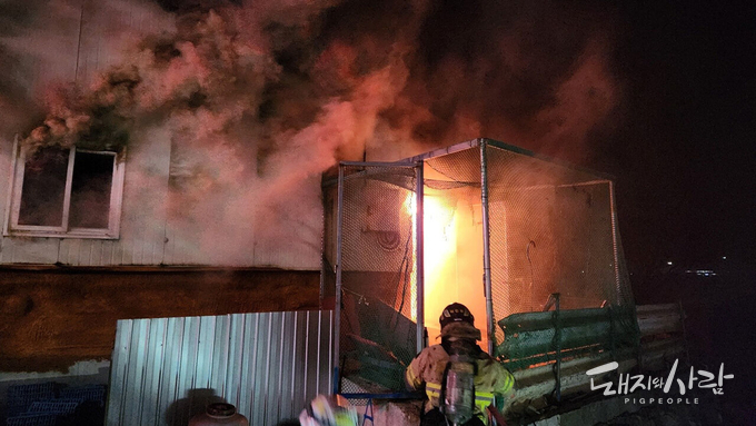 오늘 새벽 경북 성주에서 돈사 화재 사고가 일어났습니다.