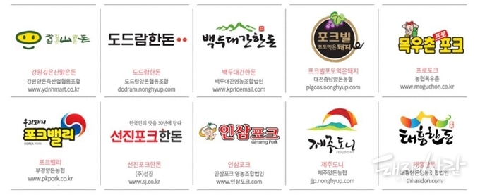 이번에 선정된 한돈 10개 브랜드는 ▶강원깊은맑은돈(강원양돈축협) ▶도드람한돈(도드람양돈협동조합) ▶백두대간한돈(백두대간영농조합) ▶선진포크한돈(선진) ▶인삼포크(인삼포크영농조합) ▶제주도니(제주양돈축협) ▶태흥한돈(태흥한돈영농조합) ▶포크밸리(부경양돈농협) ▶포크빌포도먹은돼지(대전충남양돈농협) ▶프로포크(농협목우촌) 등입니다.
