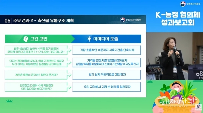 이번 성과보고회에서는 10개 소분과별로 대표과제 1개에 대한 그동안의 성과를 민간위원들이 발표하고, 토론과 평가를 거쳐 3개 과제를 선정하여 시상하는 시간을 가졌습니다. 농식품부 유튜브 채널인 ‘농러와 TV’를 통해 실시간으로 중계되었습니다.