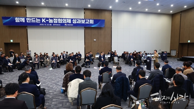 농림축산식품부(장관 송미령, 이하 농식품부)는 지난 22일 청주오스코(OSCO)에서 '함께 만드는 K-농정협의체(이하 K-농정협의체)' 성과보고회를 개최했습니다. 이번 행사에는 K-농정협의체 공동대표인 송미령 농식품부 장관과 류진호 한국4-H청년농업인연합회 회장을 비롯한 협의체 위원 120여 명과 농어업농어촌특별위원회 김호 위원장을 포함한 관계자 30여 명 등 총 150여 명이 참석한 가운데 열렸습니다.