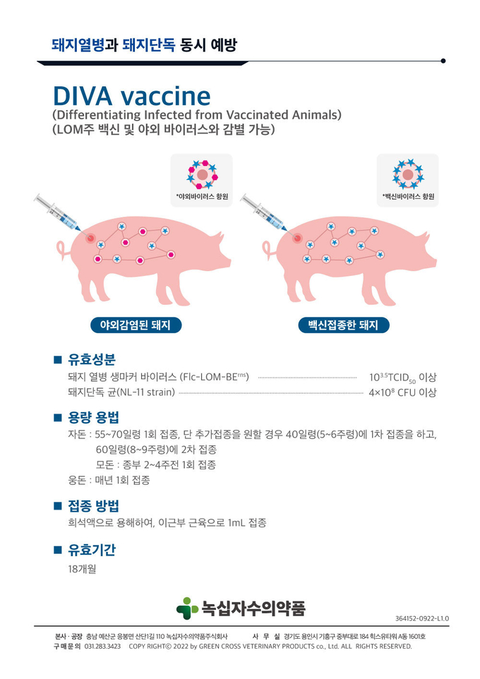[녹십자수의] 돼지열병·단독 생마커 백신 '피그텍트 단열마커'