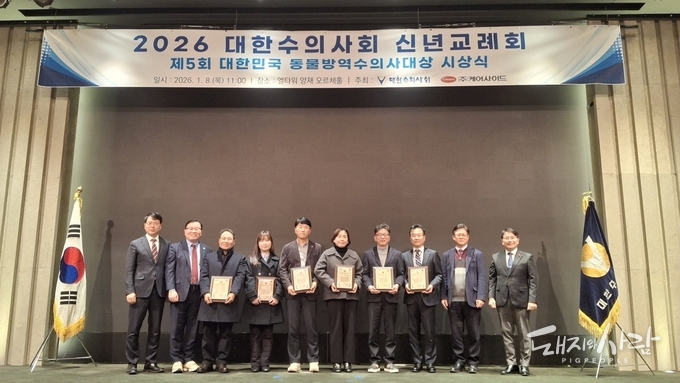 지난 8일 서울 양재 엘타워에서 대한수의사회 신년교례회가 열린 가운데 '제5회 대한민국 동물방역수의사대상' 시상식이 거행되었습니다(관련 기사). 이날 6명의 수상자들은 공통적으로 동료들에게 수상의 영광을 돌리면서 동시에 수의공무원이 충원되지 않는 등 일선 방역현장의 열악한 상황을 호소했습니다. 한편 지난해 11월 농림축산식품부는 현재 추진 중인 연구용역(’25.6~12월)을 바탕으로 전문성 중심으로 가축방역관 업무 범위를 조정하는 등 효율적인 가축방역 인력 운용방안을 마련하고, 행안부 등 관계기관 협의를 통해 수의사 공직 유입을 위한 처우개선 등 다각적인 정책을 마련하여 적극 추진해 나가겠다"라고 밝혔습니다(관련 기사).