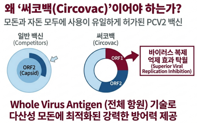 양돈 농가에서 자돈 써코바이러스(PCV2) 백신 접종은 이제 일상적인 관리 항목이 되었다. 그럼에도 불구하고 일부 농가에서는 산자수 정체와 같은 번식 성적의 한계, 자돈·비육 구간에서의 질병 문제를 여전히 경험하고 있다. 백신을 지속적으로 접종하고 있음에도 문제가 반복된다면, 관리 전략 전반을 다시 점검해 볼 필요가 있다.