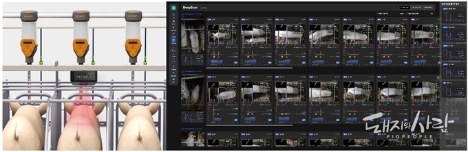 딥스캔은 역시 세계 최초 기술로, 3D 깊이 센서와 딥러닝 기술을 적용하여 모돈의 등가체중, 지방총량 등 번식 생산성에 영향을 주는 체형지표를 비접촉 측정하여 번식에 가장 유리한 신체조건이 되도록 AI가 사료공급을 정밀하게 제어하는 AI 솔루션입니다.
