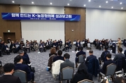 농림축산식품부(장관 송미령, 이하 농식품부)는 지난 22일 청주오스코(OSCO)에서 '함께 만드는 K-농정협의체(이하 K-농정협의체)' 성과보고회를 개최했습니다. 이번 행사에는 K-농정협의체 공동대표인 송미령 농식품부 장관과 류진호 한국4-H청년농업인연합회 회장을 비롯한 협의체 위원 120여 명과 농어업농어촌특별위원회 김호 위원장을 포함한 관계자 30여 명 등 총 150여 명이 참석한 가운데 열렸습니다. 'K-농정협의체(관련 기사)'는 새 정부가 마련한 국정과제에 대해 공감대를 형성하고, 구체적인 실행방안을 현장 농업인, 전문가, 소비자 등과 함께 모색하고자 지난 8월 19일 출범했습니다. 그동안 174명의 위원들이 국정과제 기반으로 5개 분과(식량·유통, 미래농업·수출, 농촌, 농업·축산경영, 동물복지) 및 10개 소분과로 나뉘어 24개 주요 과제 및 50여 개 세부 과제를 선정하고, 68회 170여 시간 회의를 개최하는 등 광범위한 소통 시간을 가졌습니다. 이번 성과보고회에서는 10개 소분과별로 대표과제 1개에 대한 그동안의 성과를 민간위원들이 발표하고, 토론과 평가를 거쳐 3개 과제를 선정하여 시상하는 시간을 가졌습니다. 농식품부 유튜브 채널인 ‘농러와