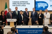 캐나다 정부가 유전자 편집 기술을 활용해 'PRRS 바이러스(PRRSV)'에 대한 저항력을 높인 돼지를 식품 및 사료용으로 공식 승인한 것이 최근 확인되었습니다. 지난 1월 23일, 캐나다 보건부(Health Canada)와 식품검사청(CFIA)은 Genus(제너스) PLC와 그 자회사인 PIC(피아이씨) Canada의 신청에 따라 'PRRSV 내성 돼지'에 대한 독립적이고 포괄적인 안전성 평가를 완료했다고 발표했습니다(관련 정보). 먼저 캐나다 보건부는 PRRSV 내성 돼지로 만든 식품이 현재 캐나다에서 유통되는 돼지고기와 마찬가지로 안전하고 영양가가 높다고 결론 내렸습니다. 이에 해당 돼지에서 생산된 식품에는 특별한 라벨링이 필요하지 않습니다. 캐나다 식품검사청은 이 돼지가 가축 사료로 사용하기에도 안전하고 효과적임을 확인했다고 밝혔습니다. 캐나다 정부는 "돼지의 PRRSV의 저항성을 향상시키면 농장에서는 이 바이러스로 인한 돼지 질병을 예방하고 항생제 사용을 줄이며 동물복지를 개선하는 동시에 보다 안정적이고 저렴하며 지속가능한 식품 공급을 지원할 수 있다"라며, "Genus PLC의 PRRSV 내성 돼지는 이미 미국, 브라질, 콜롬비아, 도미니카 공화국