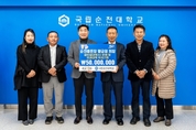 국립순천대학교(총장 이병운)는 1일, 지역 축산업의 산증인인 순천종돈장 '황금영 회장'이 대학발전기금 5천만원을 기탁했다고 밝혔습니다. 이날 기탁식은 단순한 전달식을 넘어 ‘가족과 함께하는 나눔’으로 그 의미를 더했습니다. 이병운 총장을 비롯한 대학 주요 보직자들이 참석한 가운데, 황금영 회장은 황창영 전무와 황도연 이사 내외 등 온 가족과 함께 자리하여 지역사회와 대학이 나아가야 할 상생의 가치를 몸소 보여주었습니다. 순천종돈장은 지역을 대표하는 향토 기업으로서 인재 육성 장학금, 축산 기술 연구 지원, 취약계층 정기 후원 등을 실천하며 공동체 성장에 기여해왔습니다. 국립순천대학교와는 2018년부터 인연을 맺고 꾸준히 사랑을 전해왔으며, 이번 기탁을 포함해 누적 기탁액 7천만 원을 달성하며 지역 사랑의 온도를 높이고 있습니다. 황금영 회장은 “평생을 흙과 가축과 함께하며 얻은 결실을 지역의 미래인 학생들에게 돌려줄 수 있어 기쁘다”라며, “이번 발전기금이 우리 지역을 지탱할 스마트 축산·농업 인재들이 꿈을 키우는 비옥한 토양이 되기를 바라며, 대학과 지역사회가 손잡고 함께 성장하는 마중물이 되기를 소망한다”고 소회를 전했습니다. 이병운 총장은 “평생을 지역