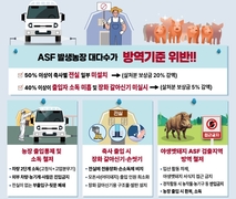 농장 출입통제 및 소독 철저 축사 출입시 장화갈아신기·손씻기 야생멧돼지 ASF 검출지역 방역철저