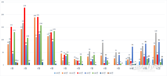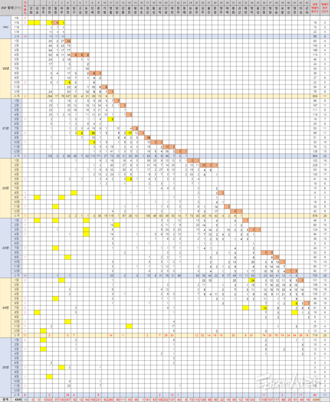 ▶월별 ASF 야생멧돼지 발견 현황@돼지와사람 편집