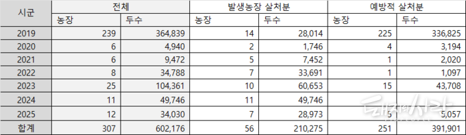 - 충남 1건: 당진 1(송산면/'25.11.25)