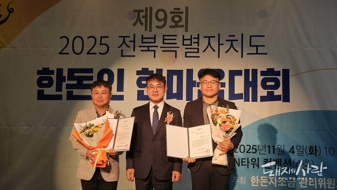 유공자에 대한 시상도 이뤄졌습니다. 도지사 표창은 김락기 김제지부장, 이강영 남원지부장이 수상했고, 대한한돈협회장 감사패는 전북도청 동물방역과 이재윤 과장과 전북도청 축산과 이재욱 주무관에게 전달됐습니다.
