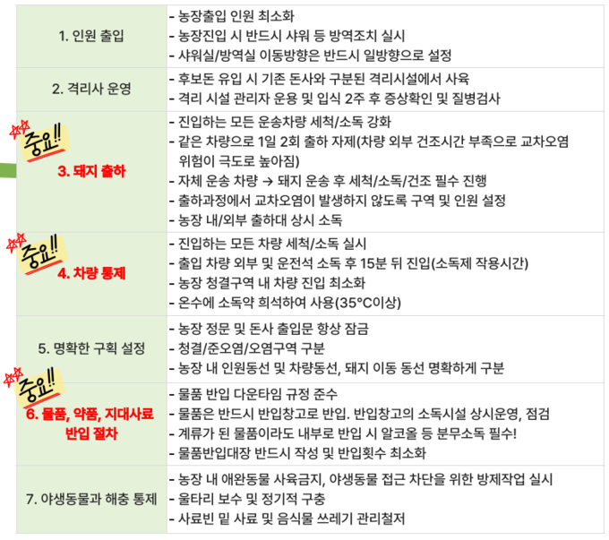 벌써 겨울이 코앞으로 다가온 상황에 지금 시설적인 개선을 하기는 어려운 부분이 많을 것이다. 방역시설 개선은 장기적인 계획으로 하나씩 지속적으로 진행해야 할 것이다. PED 차단은 거창한 설비보다, 일상적 절차의 반복이 핵심이다. 아래는 실제 현장에서 즉시 점검 가능한 항목들이다. 이런 세심한 노력으로 이번 겨울을 질병유입 없이 무사히 보낼수 있기를 바란다. PED는 '추워서 생기는 병'이 아니라 '밖에서 들어와서 생기는 병'이다.