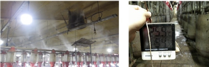 또한, 자동 안개분무시설을 이용하면 좀 더 효율적으로 습도를 관리할 수 있다. 그런데 이때, 한가지 선행되어야 할 사항이 있다. 돈사 내에 온습도계를 설치하고 관리하는 것이다. 농장들을 방문하다 보면 온도센서는 있지만 습도계가 돈방별로 설치되어 있지 않거나, 오래전에 설치한 습도계가 관리가 안되어 망가지거나, 고장으로 습도계가 정확하지 않은 경우가 많다. 돼지를 잘 키우기 위해서는 정확한 수치를 가지고 평가하고, 기록하는 습관이 필요하다.
