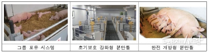 분만 직후에는 자돈 보호를 위해 분만틀을 활용하되, 일정 기간이 지난 후에는 틀을 개방해 모돈이 자유롭게 움직일 수 있는 가변형 환경 관리 방안을 담았습니다. 여기에 적정 온도를 유지하는 난방장치 설치와 위생 관리 기준을 더해 모돈의 스트레스를 줄임과 동시에 자돈의 생존율까지 높이는 일석이조의 효과를 기대할 수 있습니다.
