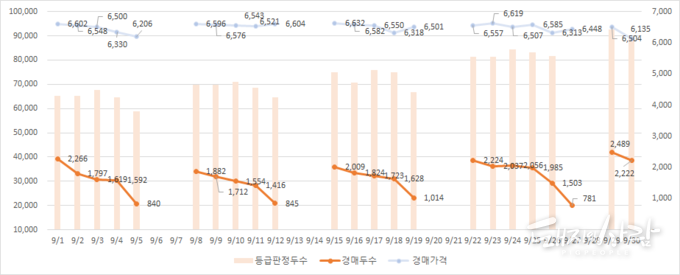 - 경매가격과 경매두수는 등외 및 제주 제외임