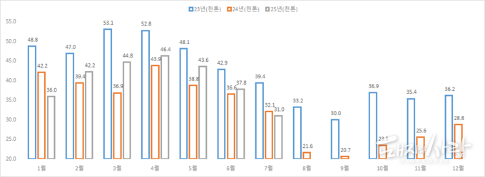 - '25년 8월 양돈용 배합사료 생산량 52만6천톤(전월대비 -2.2%, 전년대비 -1.3%)