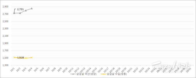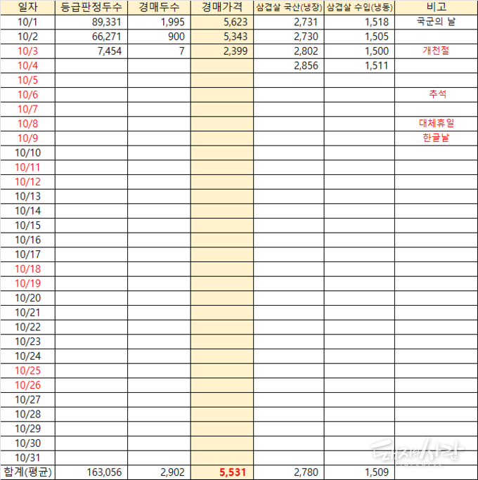 ※ 10월 일자 주간 돼지고기 시황(출처 한국육류유통수출협회)