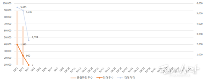 ◆ 이달의 일별 도매가격, 경매두수, 등급판정두수 추이