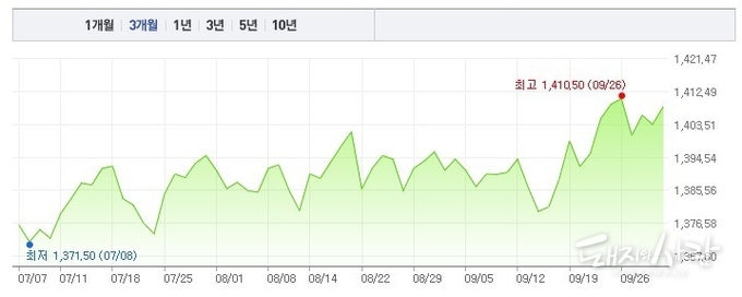 ◆ 이달의 일별 돼지고기(삼겹살) 소비자 가격 추이