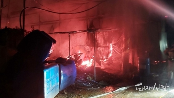 새벽 경북 김천의 한 양돈장에서 화재 사고가 일어났습니다.
