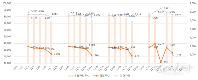 - 경매가격과 경매두수는 등외 및 제주 제외임
