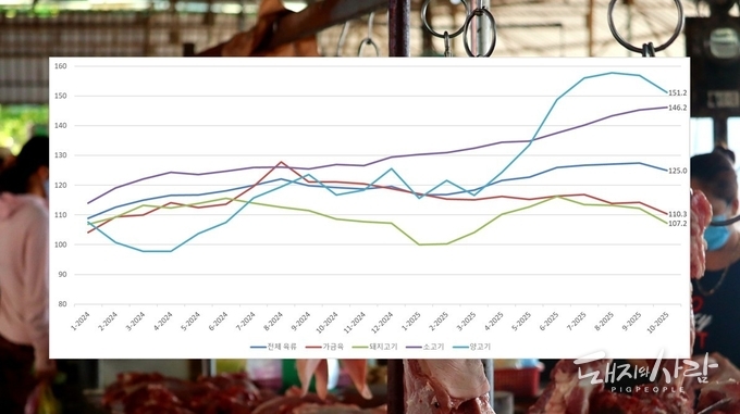 8개월 연속 상승한 후, 돼지고기와 가금육 가격의 급격한 하락과 양고기 가격이 하락한 영향입니다. 소고기 가격 상승으로 일부 상쇄되었습니다. 소고기 가격은 11개월 연속 상승해 역대 최고가를 또 경신했습니다.